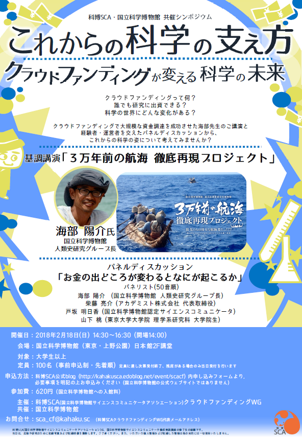 お問合せ:sca_cf@kahaku.sc (科博SCAクラウドファンディングWG代表メールアドレス)
