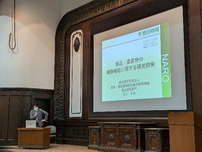 続いて食品の機能性 を「研究する」立場である石川さまから,機能性の根拠となる 研究の進め方や,生鮮農産物の機能性表示届出のための研究開発といった内容について,実例も含めてご説明いただきました.参加者の方々も普段は聞けない話に熱心に耳を傾けているようでした.