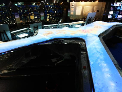 そこで思いついたのが、博物館に3D造型技術を導入し、精密な地形や地下構造の模型を作り、その上に情報を精緻なプロジェクションマッピングで図面を投影し、多人数で観察する際の空間スケールを統一し、地質情報を分かり易く可視化することでした。投影する画像は地形に合わせて歪み補正を行う必要がありますが、この手法で特許を取得できたため、これをもとに上記のベンチャーを立ち上げたわけです。2018年3月には、日本全国の地形を再現した世界最大級のプロジェクションマッピング模型を設置しました。